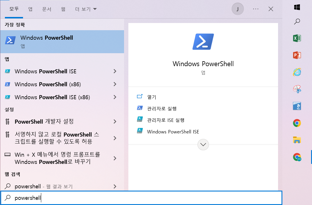 powershell을 실행해 아래와 같이 환경을 셋팅해줍니다.
