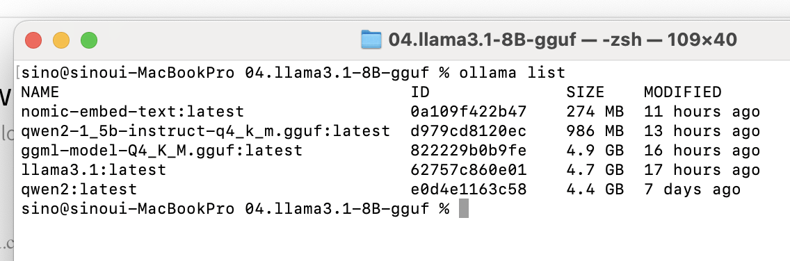 ollama list를 검색했는데 아래와 같은 모델들이 설치된 것을 확인할 수 있습니다.