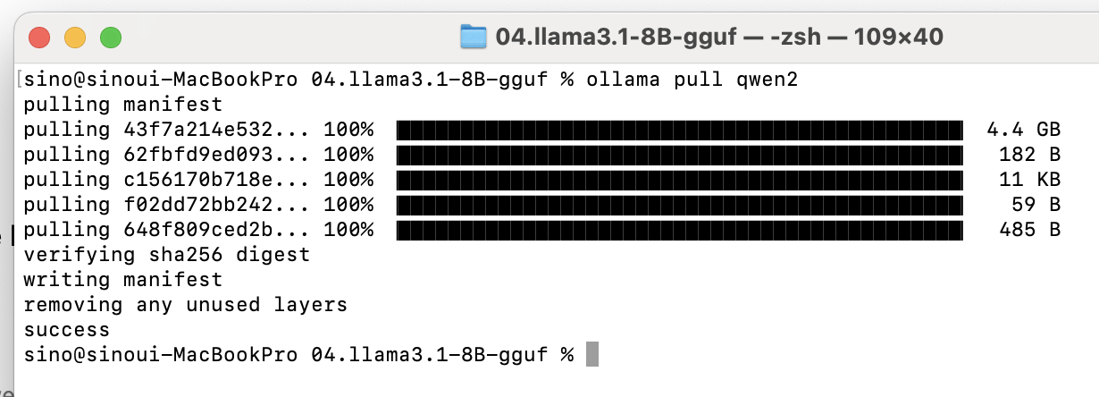 ollama pull qwen2라고 입력하면 기본 모델을 설치합니다.