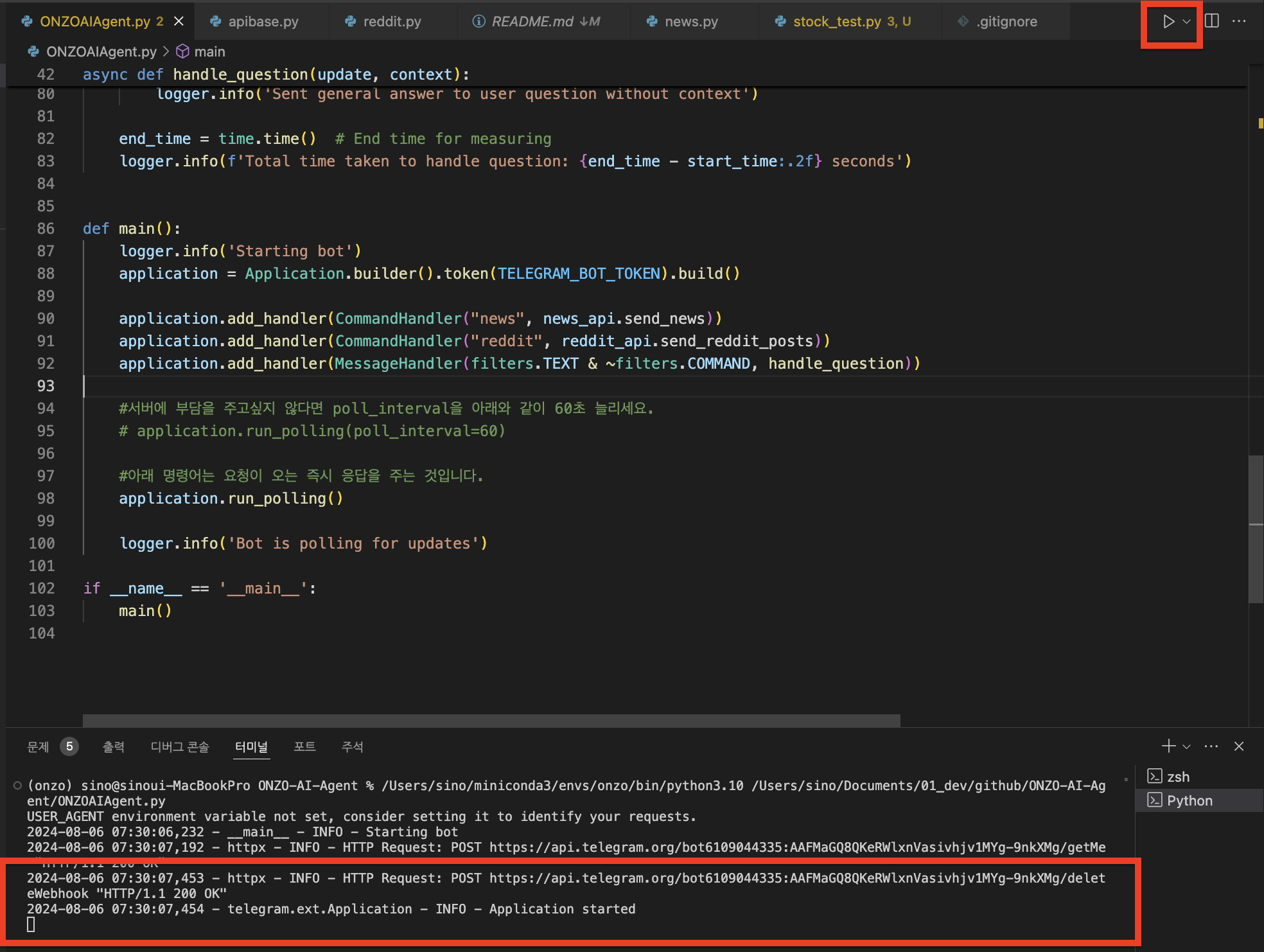 그리고 ONZOAIAgent.py 파일을 엽니다.