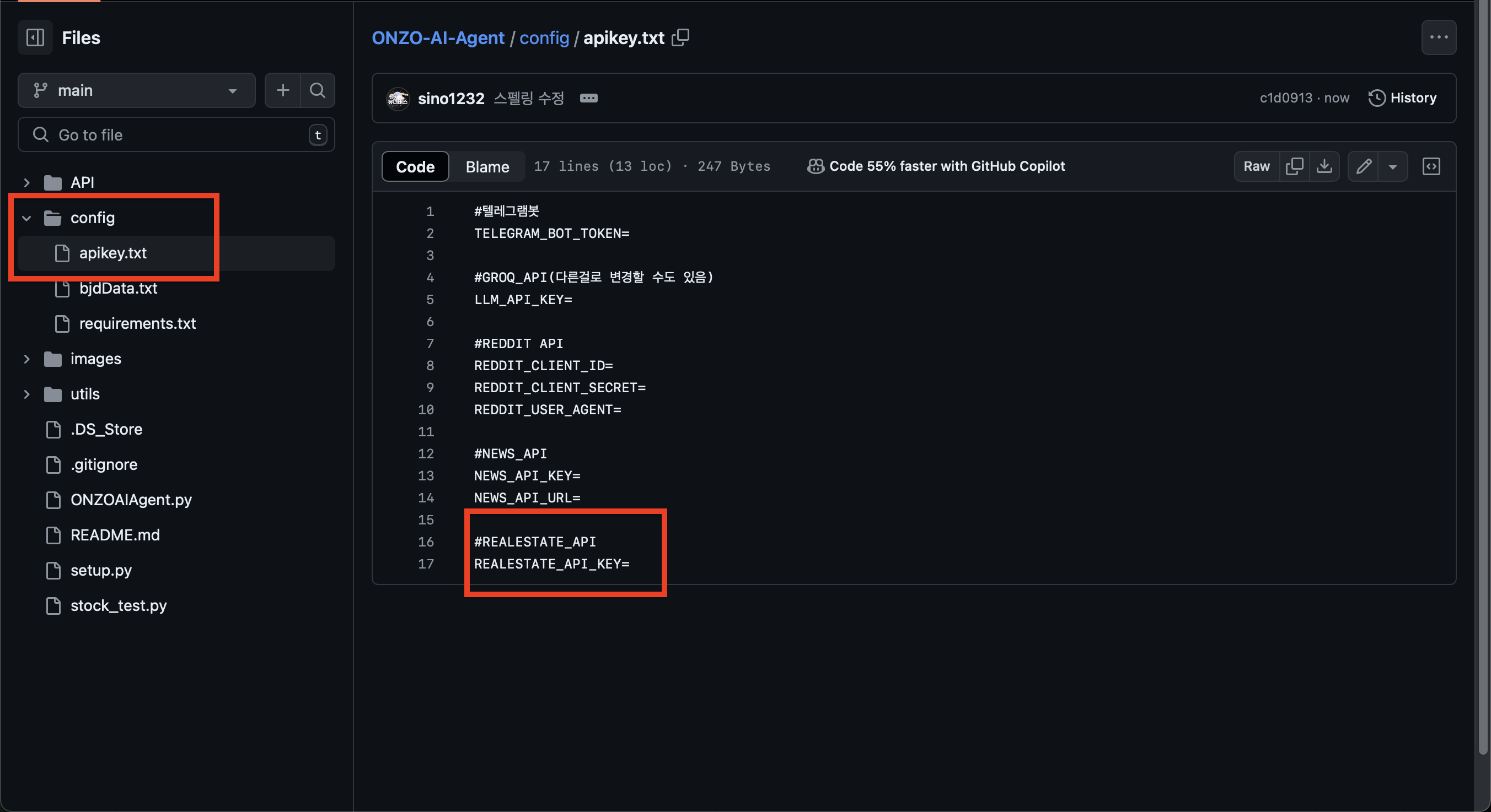 할일은 apikey.txt파일에 REALESTATE를 입력하면 돼요! 참 쉽죠?!