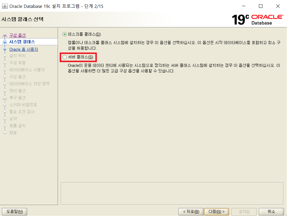 7. 데이터베이스를 혼자 사용할 경우에는 데스크톱 클래스를 선택하고, 여러 명이서 사용할 경우 서버 클래스를 선택합니다.