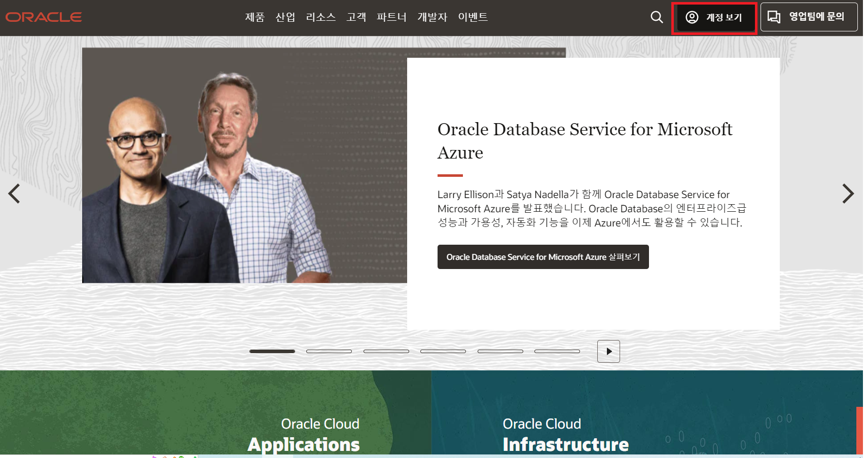 1. https://www.oracle.com/kr 홈페이지 접속 및 회원가입 후 로그인