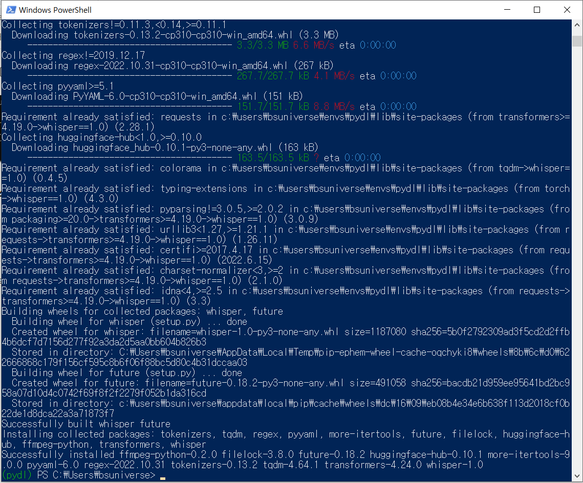 위 명령어를 이용해 Whisper 모듈을 설치 해 줍니다.