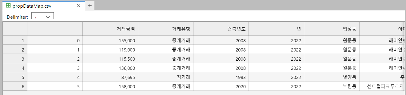 #utf-8 인코딩 설정 및 해당 파일(propDataMap.csv) 읽기
