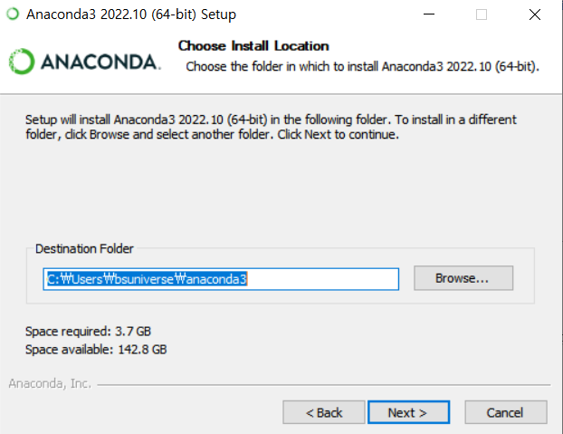 이 체크박스를 선택하면 이후에 아나콘다에서 제공하는 명령어를 사용하기 위한 추가 설정을 생략할 수 있습니다.