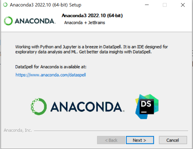그리고 dataspell 이라는 IDE를 추천해주는데 머신러닝과 data 분석을 하시려면 제공되는 사이트에서 설치하시면 되겠습니다. Next버튼을 클릭하면 설치가 완료됩니다.