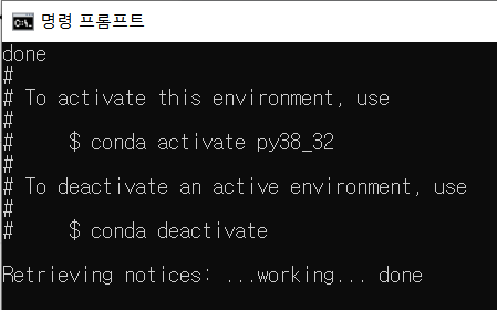 #conda에서 py38_32이라는 폴더에 python 3.8.5버전의 가상환경을 만든다