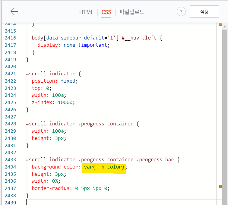 블로그 티스토리 상단에 스크롤 Progress Bar 색깔 바꾸기