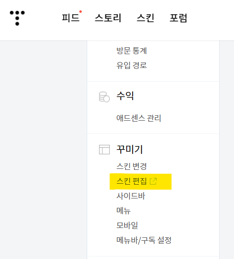 블로그 관리에서 스킨 편집을 클릭합니다.
