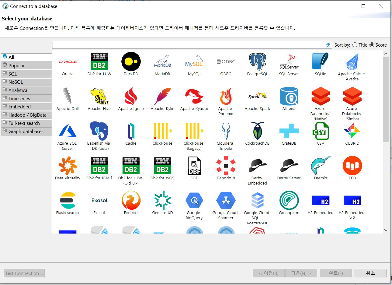 Connection을 클릭하면 다양한 DB를 확인할 수 있습니다.
