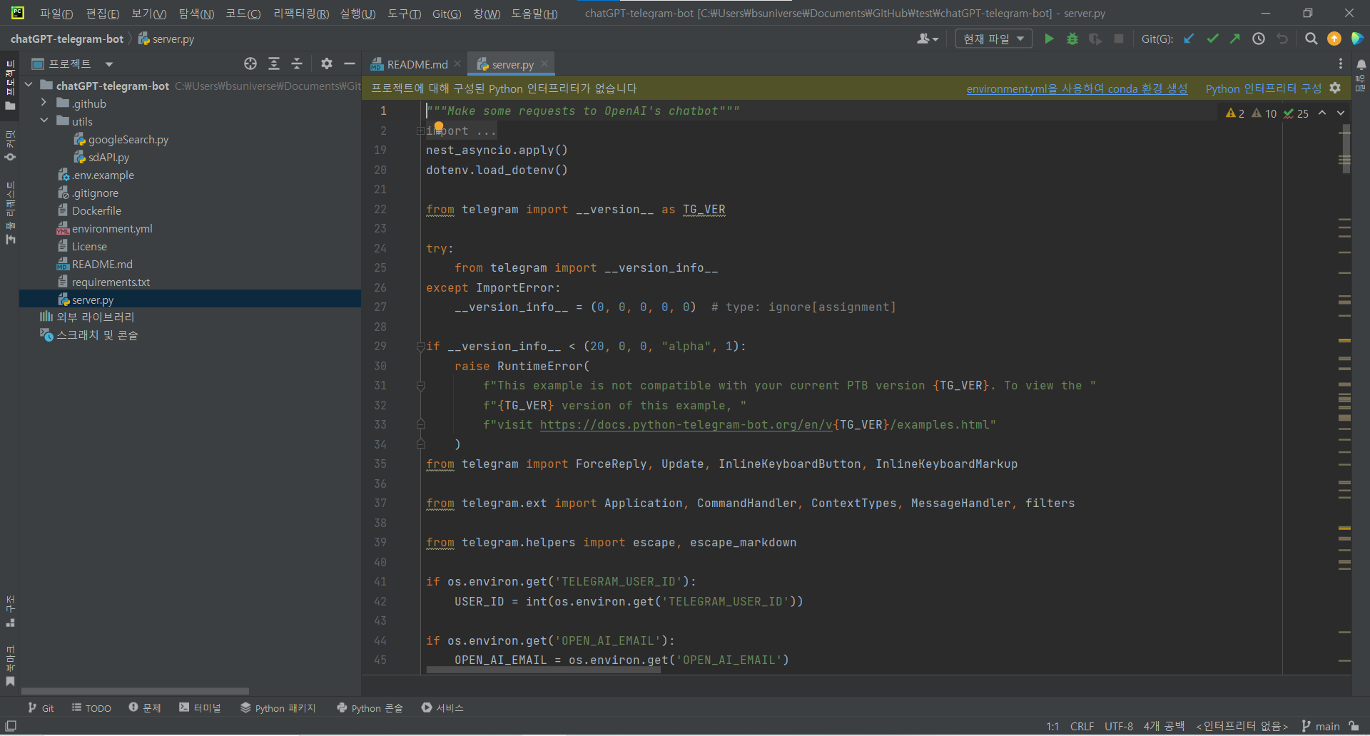 (4) Telegram 및 chatGPT ID 암호 입력하기(.envs 파일내 설정하면됩니다.)