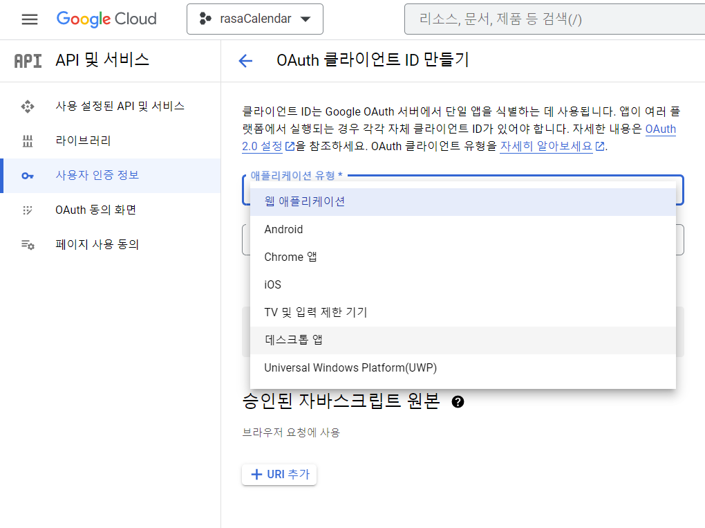 저는 OAuth 클라이언트ID로 만들겠습니다.