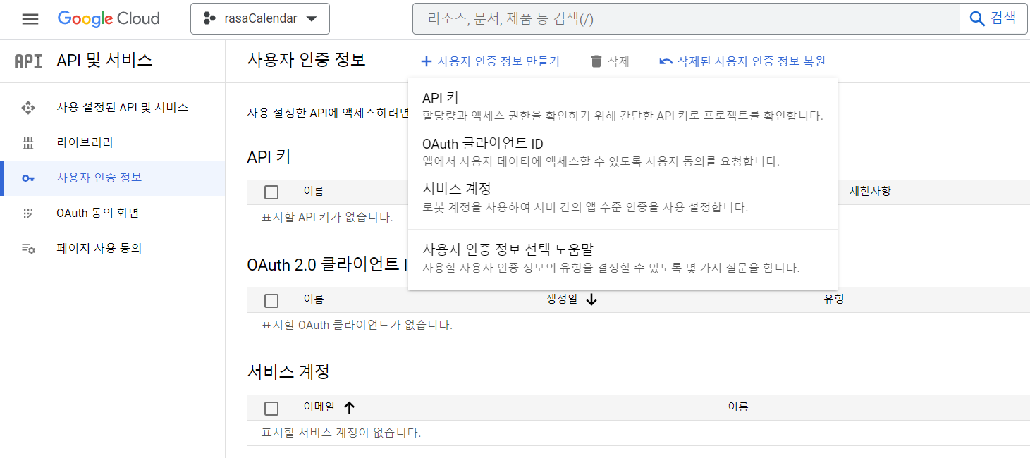 (1) 구글 캘린더 API 값을 가져와보자(API key 또는 OAuth 클라이언트)