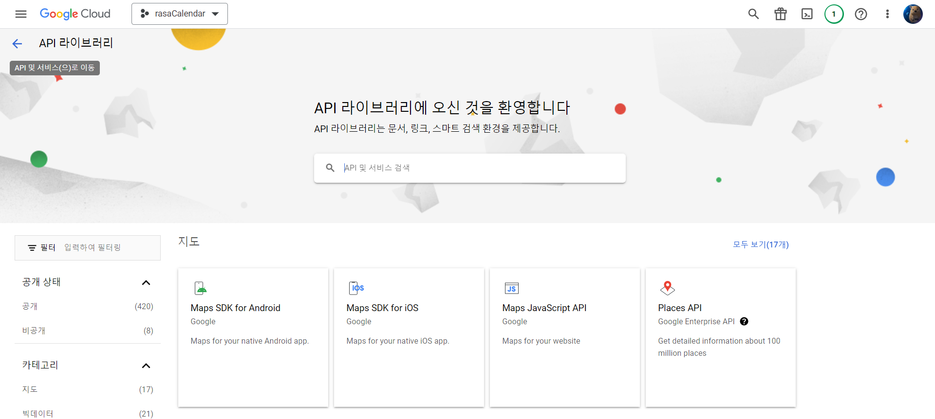 그러면 아래와 같이 API 라이브러리를 확인할 수 있습니다.