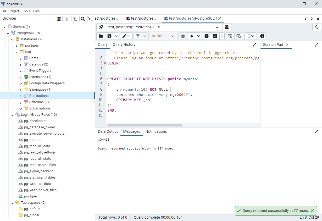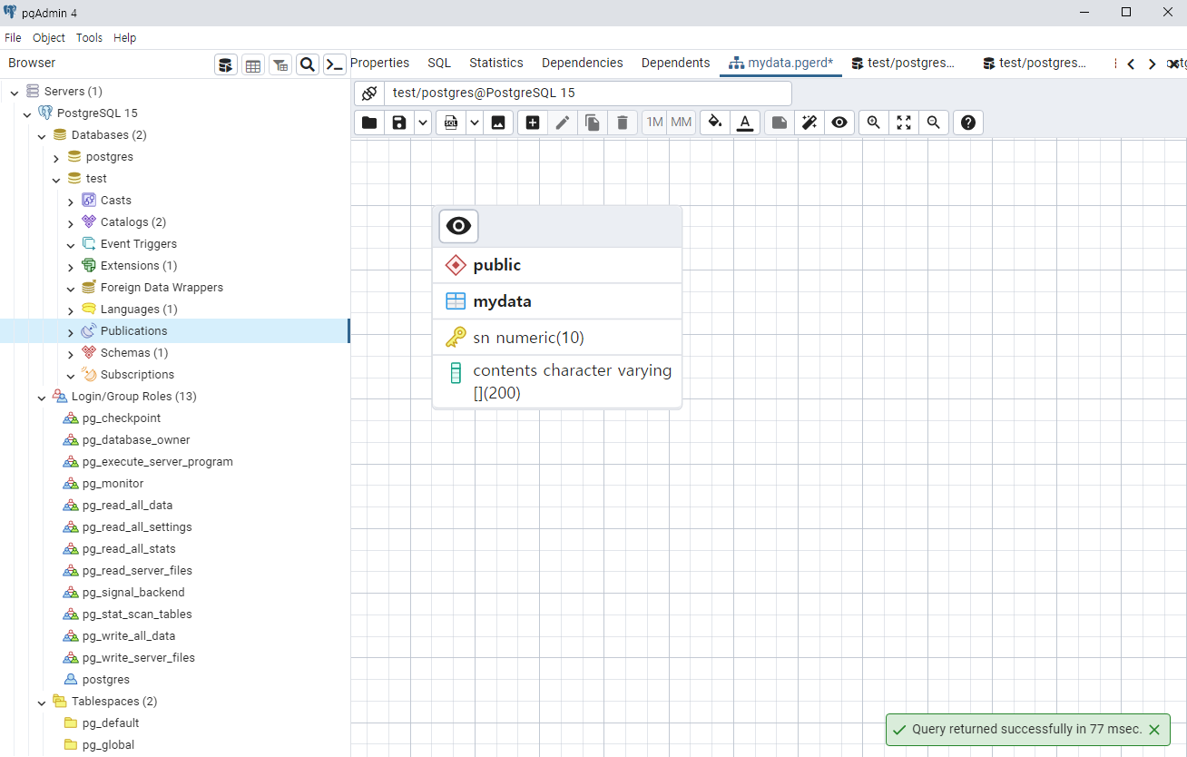 ERD Tool에서 테이블을 그려보고 Query Tool에서 조회해보도록 하겠습니다.